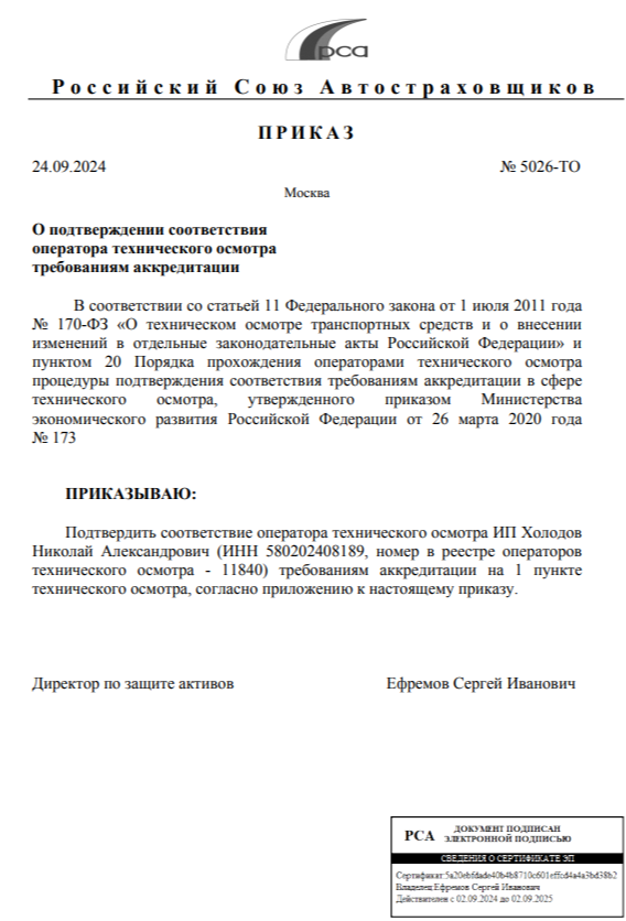 аккредитованный оператор технического осмотра, номер в реестре 11840.
